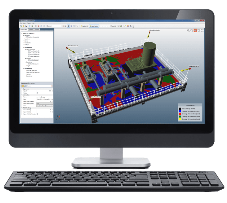 Detect3D is built to significantly accelerate the full lifecycle of fire & gas mapping — from initial facility modeling to optimization, analysis, and reporting.